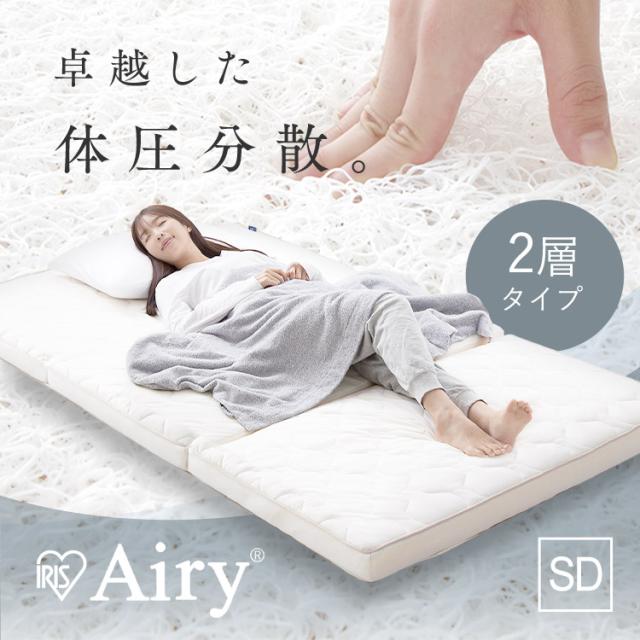 マットレス セミダブル 三つ折り 折りたたみ 厚さ9cm 硬め 体圧分散 高反発 洗える 抗菌 防臭 立てかけ 通気性 湿気対策 お手入れ 簡単 2層 リバーシブル オールシーズン 通年 敷布団 来客用 アイリスオーヤマ エアリーハイブリッド Airy HB90-SD *