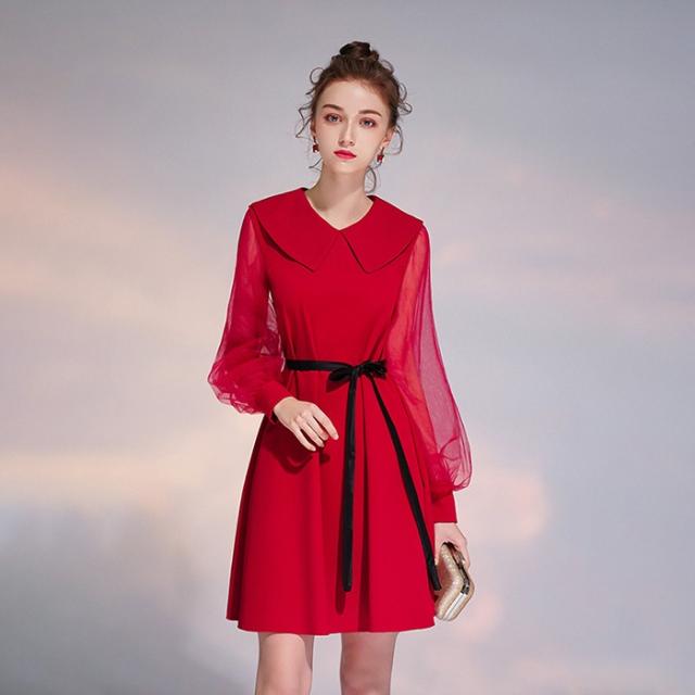 パーティードレス 膝丈 小さいサイズ 大きいサイズ ファスナータイプ 春 夏 秋 大人 韓国 長袖 フォーマル 発表会やステージ衣装 披露宴 結婚式 司会者 成人式 ドレス da041c7c7s3