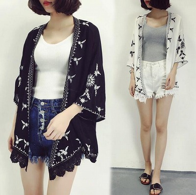 ビーチカバー カーディガン 薄手 刺繍入りガウン 日焼け止め