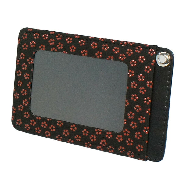 印伝 甲州印伝 印傳屋 上原勇七 パスケース 定期入れ 2525 小桜 黒地×赤漆 鹿革 本革 レザー 和柄 ブランド 冬ギフト バレンタイン 贈り物 YM02