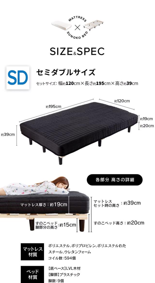 ベッド マットレス 脚付きマットレス セミダブル SD 脚付き 安い 人気 セミダブルサイズ おすすめ ベット 脚付きベッド セミダブルベッド マットレス付き 寝具 布団 圧縮 圧縮タイプ ベッドマットレス付き 寝具 AATM-SD 送料無料 アイリスプラザ
