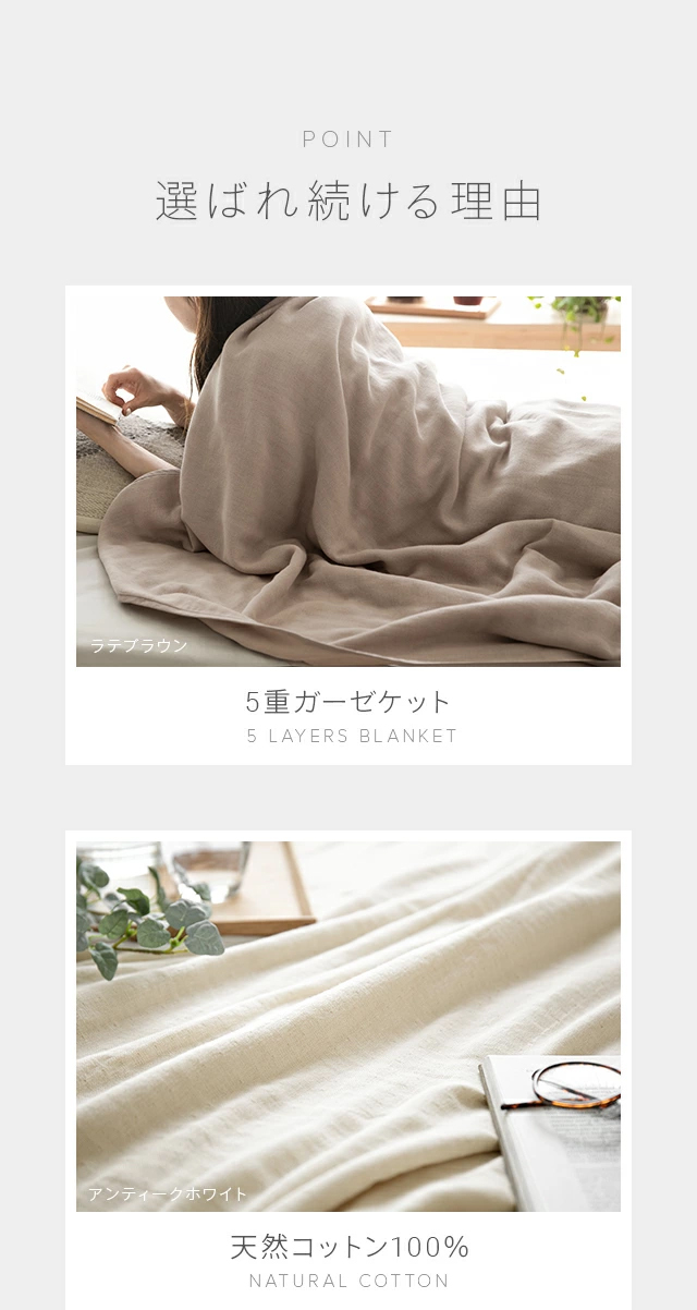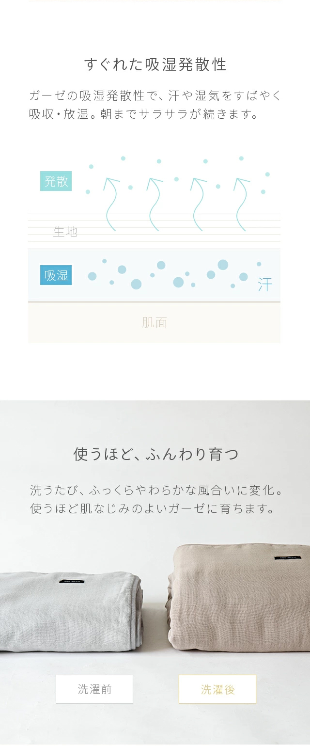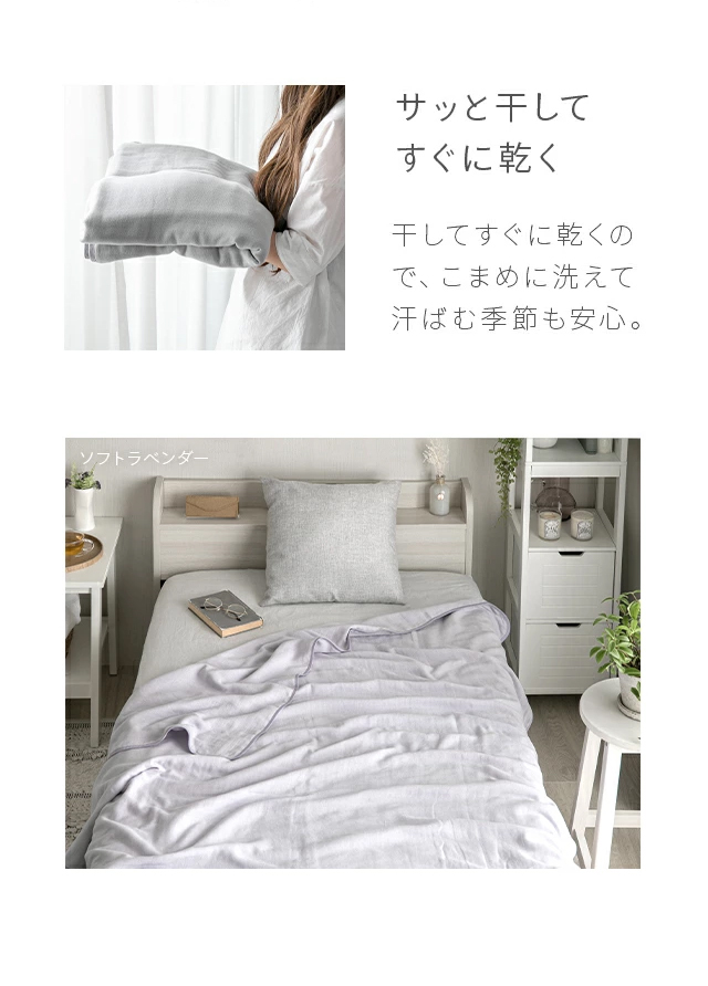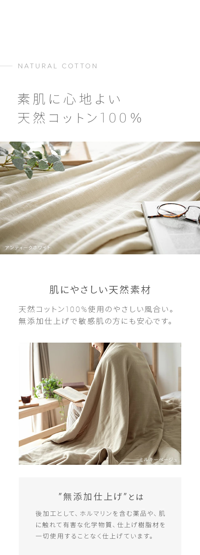 - 寝るときにかるく使えるものを探してました こちらの商品は一年中つかえると言うことでとても助かります 暑い夏にはちょっとだけ厚いかも? けどガーゼタイプなので洗濯してもすぐ乾きそうなので衛生面には最適で...