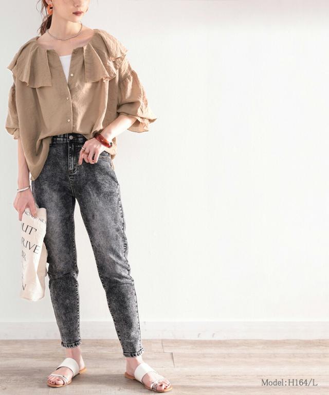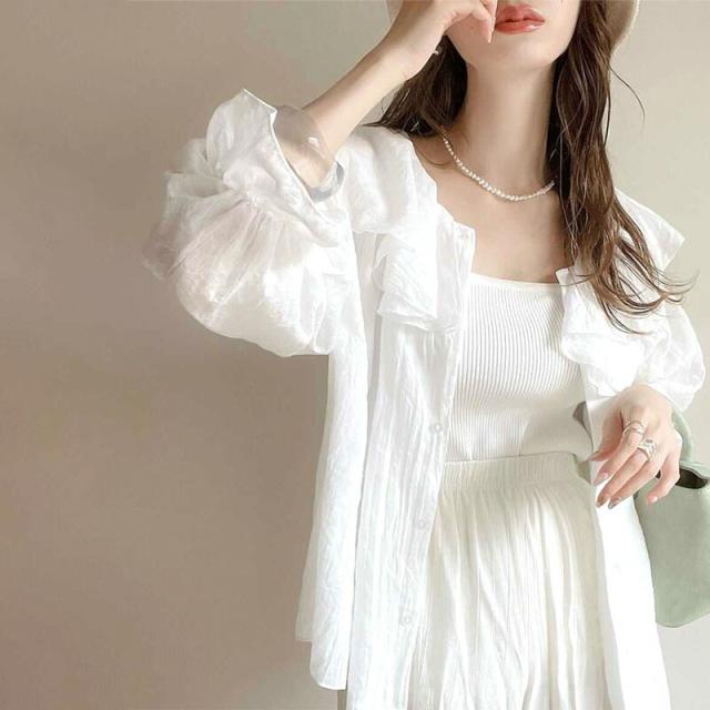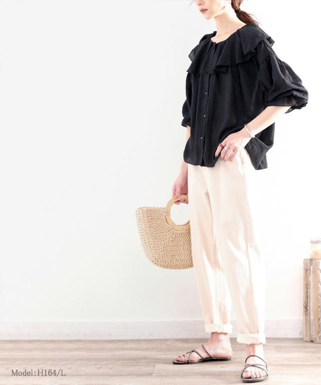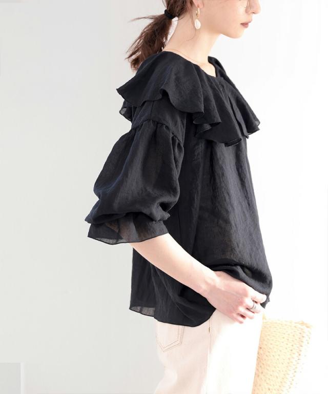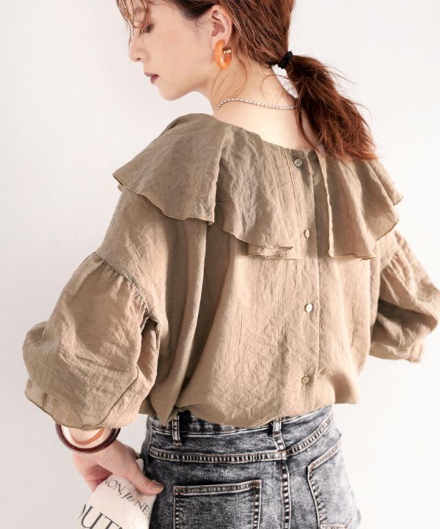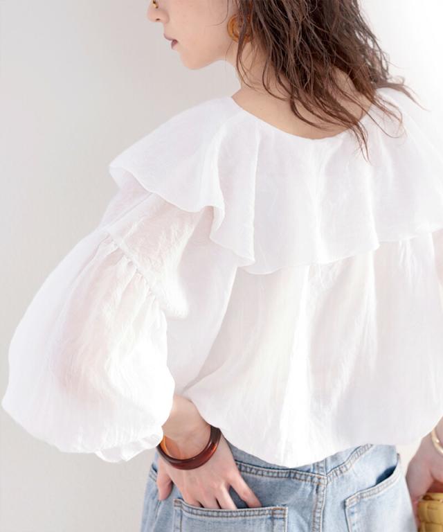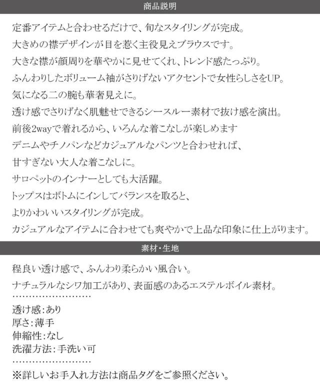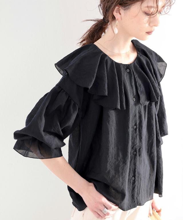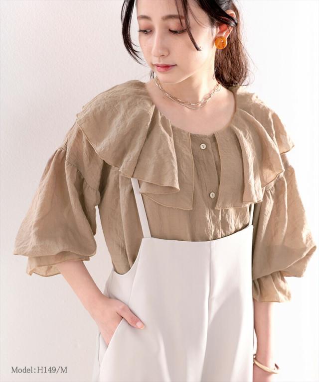 ★大人なシアー魅せ。2wayラッフルフリルビッグカラーブラウス★