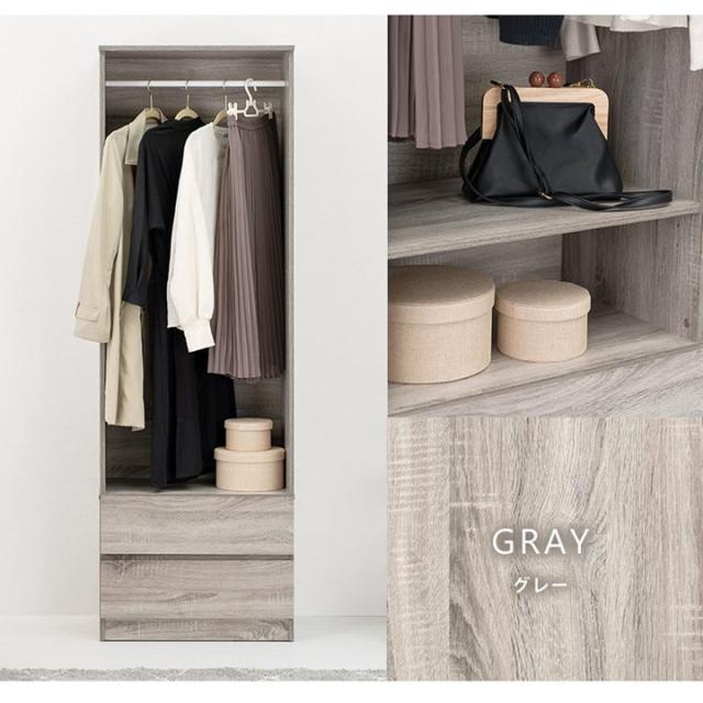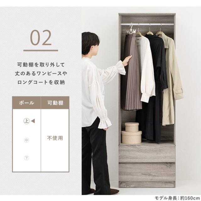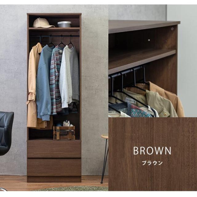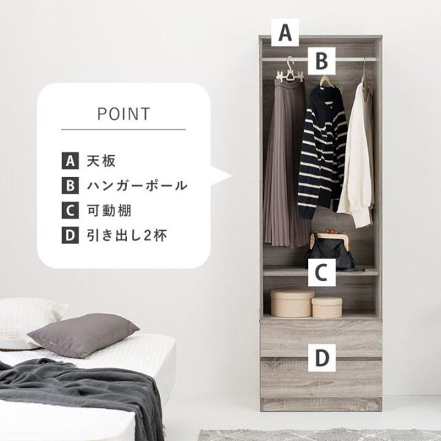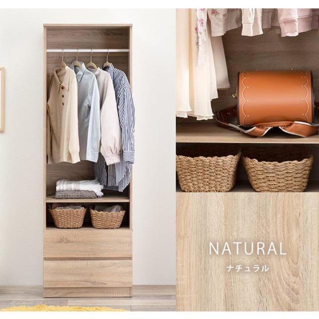 ハンガーラック ワードローブ スリム 幅60cm 引き出し収納付き おしゃれ 高さ調節 可動棚付き