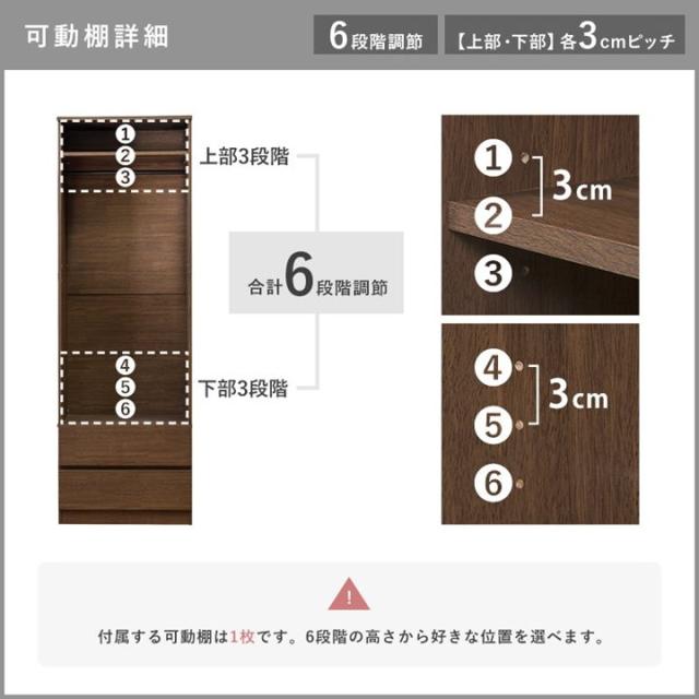 ●可動棚とハンガーポールは身長や収納する物に合わせて自由に高さ調節できます。