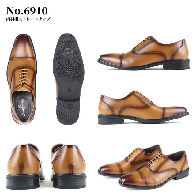 ビジネスシューズ 本革 メンズ 人気商品 24.5-30.0cm No.6910-6919 柔らかい レザー 革靴 紳士靴 紐靴 黒 キャメル 茶色 ブラウン 大きいサイズ クッションインソール SARABANDE サラバンド 衝撃吸収 冠婚葬祭 691