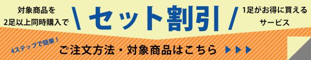 商品名に[セット割引対象1足税込○○○○円]の記載がない販売ページもご用意しております。