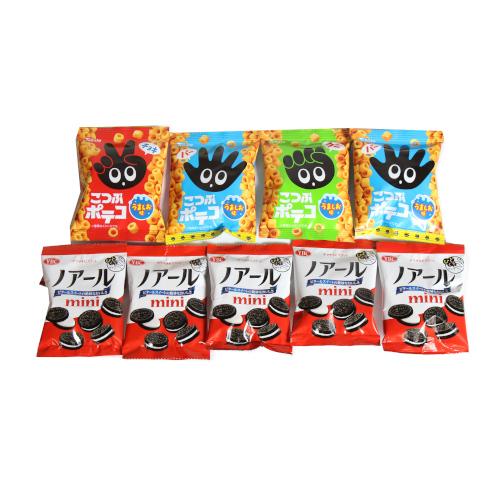 ココアの風味のクッキーと、口どけのよいバニラクリームのベストバランス「ノアールミニ」と、カリッと食感が楽しくお子様も食べやすい「こつぶポテコ」のセットです。