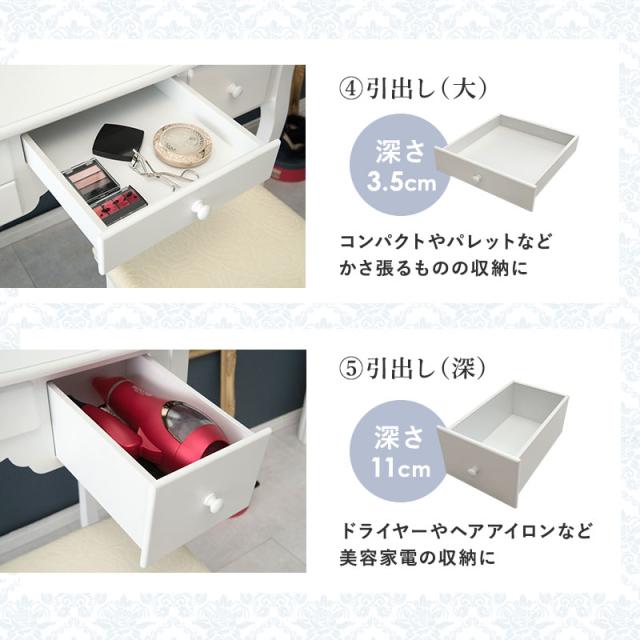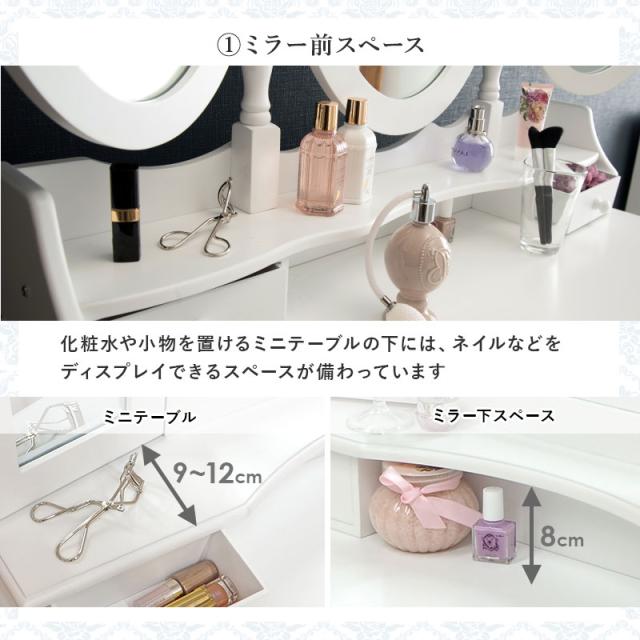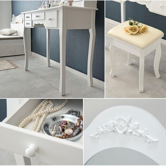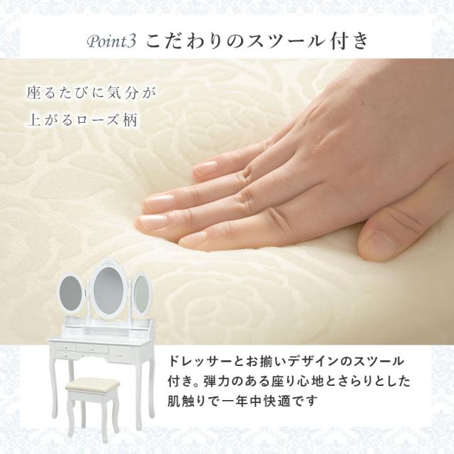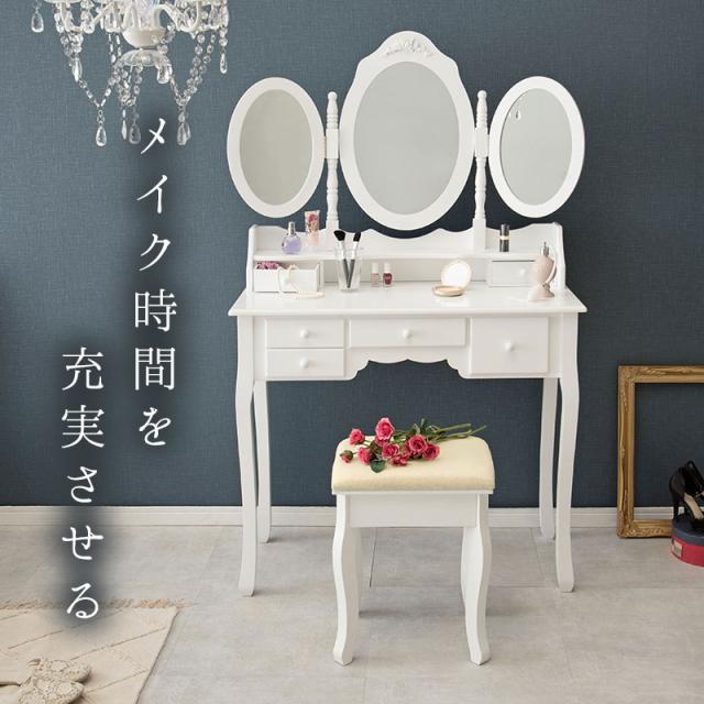 鏡台 化粧台 ドレッサースツール付き MD-6563 ホワイト 鏡 化粧 三面鏡 収納 引き出し コスメ ミラー かわいい