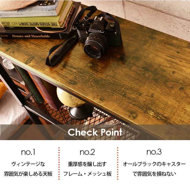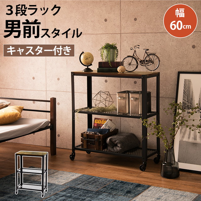 収納 ラック KR-3765 萩原 棚 リビング 収納 スリム 幅60cm コンパクト シンプル サイドテーブル キャスター付 ワゴン