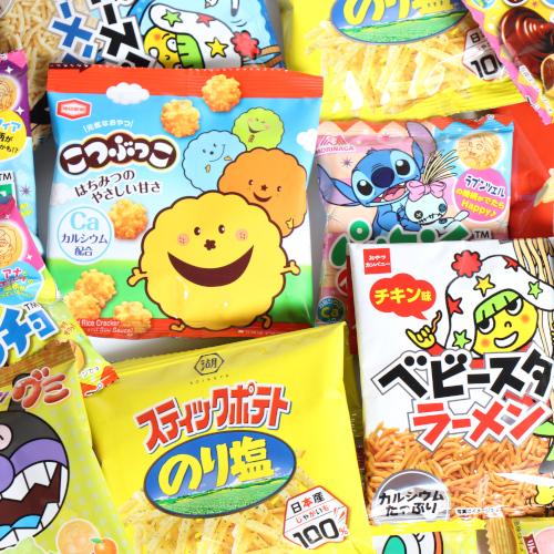 アンパンマングミ 21g×4コ、パックンチョ(チョコ・イチゴ) 1袋×4コ、スティックポテトのり塩 13g×2コ、スティックポテトうすしお味 13g×1コ、こつぶっこ 15g×1コ、ベビースターいろいろ 18g×2コ
