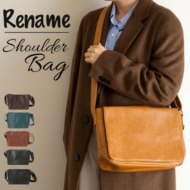 ショルダーバッグ メンズ 小さめ 通販 斜めがけ かっこいい 通勤 通学 サブバッグ かぶせ ミニショルダーバッグ シンプル 無地 カジュアル 旅行 トラベル 散歩 ウォーキング Rename custom リネームカスタム RSG60029 メッセンジャーバッグ