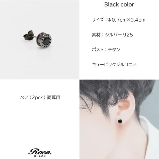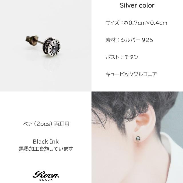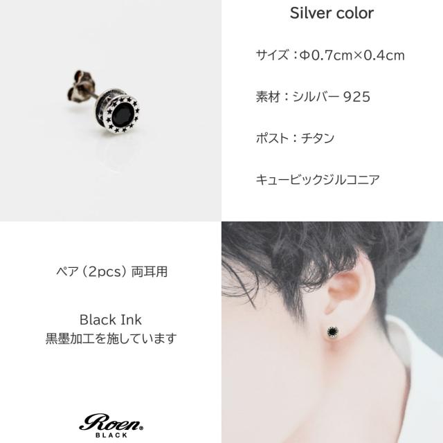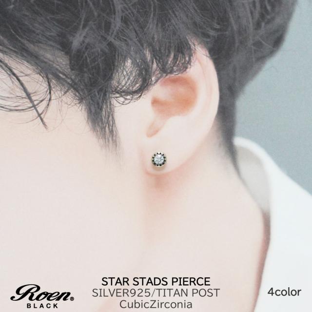 roen ロエン ピアス メンズ アクセサリー スター 星 シルバー ブラック チタンポスト アンティーク スタッド