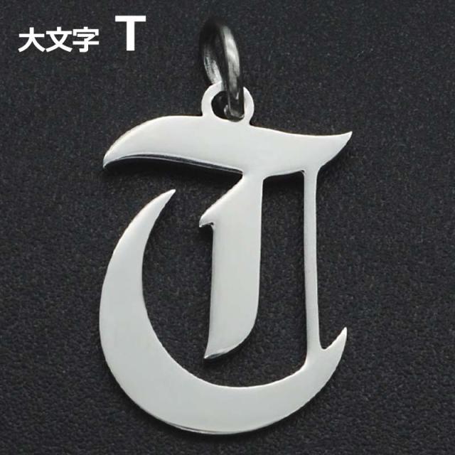 ゴシックアルファベットステンレスパーツ(大文字:T) 1個販売 英語 メッセージ イニシャル レター 文字 チャームパーツ メンズ レディース 部品 金具 DIY ペンダントトップ アクセサリーチャーム ピアス クラフト 手作り ネックレス ハンドメイド ブラックレター