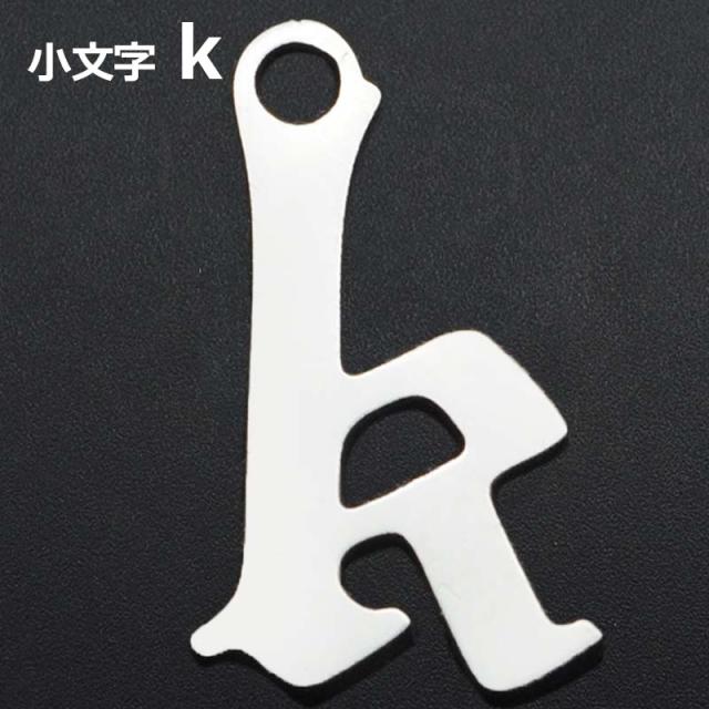 ゴシックアルファベットステンレスパーツ(小文字:k) 1個販売 英語 メッセージ イニシャル レター 文字 チャームパーツ メンズ レディース 部品 金具 DIY ペンダントトップ アクセサリーチャーム ピアス クラフト 手作り ネックレス ハンドメイド ブラックレター K ケイ