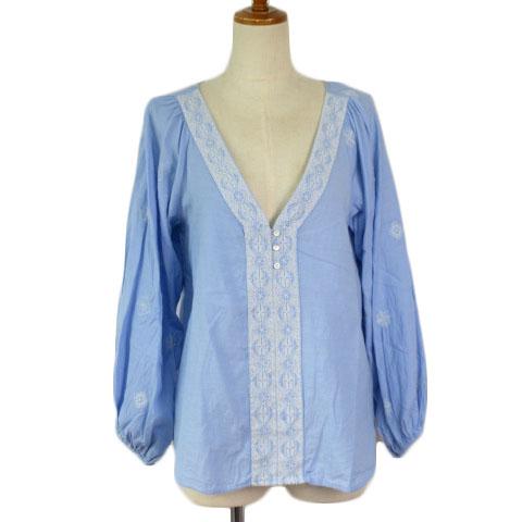 【中古】ザラ ZARA カットソー ブラウス プルオーバー Vネック 刺繍 S 青 ブルー レディース