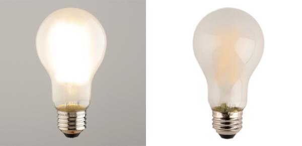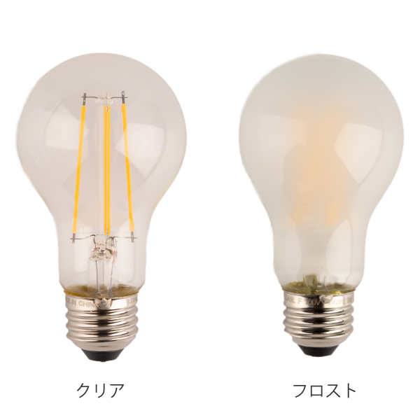 ●フィラメントの美しい輝きが見えるクリアタイプとふんわりとした灯りが広がるフロストタイプの2種類からお選びいただけます。