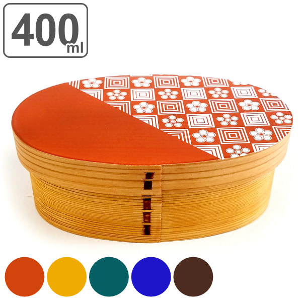 お弁当箱 曲げわっぱ 400ml ウレタン Kutan 梅畳 弁当箱 1段( 弁当箱 ランチボックス 1段 わっぱ 弁当 お弁当 小判型 九谷五彩 一段 仕切り付き ゴムバンド付き 和風 和柄 日本製 大人 おしゃれ 曲げわっぱ 弁当箱)