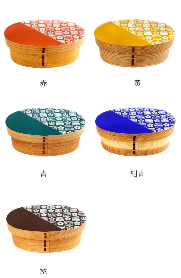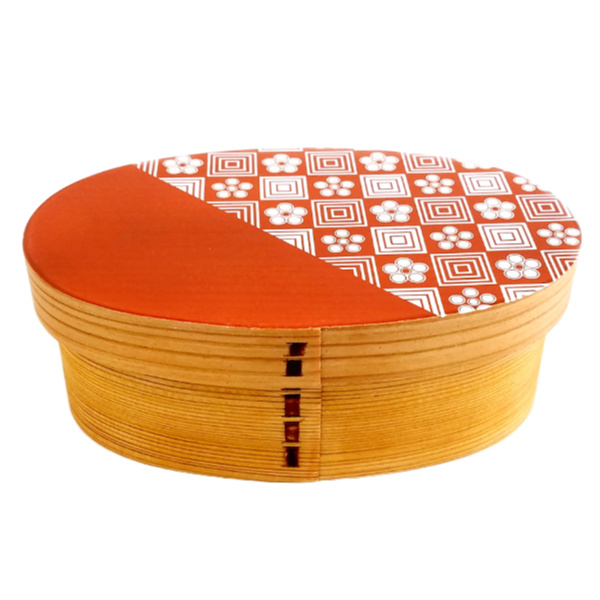 木のぬくもりと鮮やかな和柄が合わさった曲げわっぱ