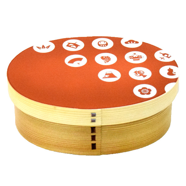 木のぬくもりと鮮やかな和柄が合わさった曲げわっぱ