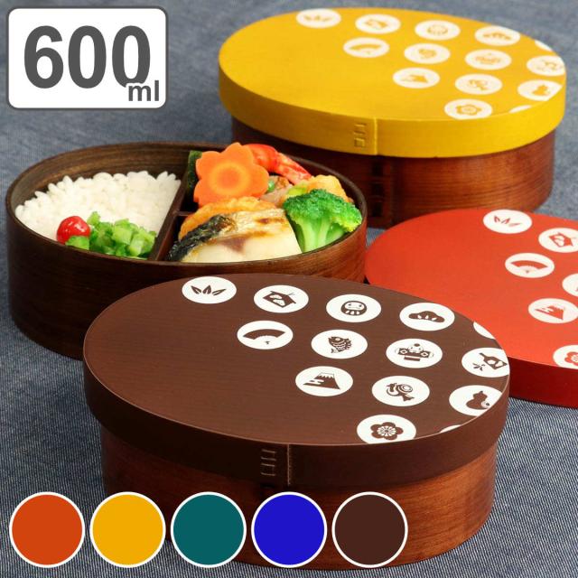 お弁当箱 曲げわっぱ 600ml 1段 ウレタン Kutan 玉福 ( 弁当箱 ランチボックス わっぱ 弁当 お弁当 小判型 九谷五彩 一段 仕切り付き ゴムバンド付き 和風 和柄 日本製 大人 おしゃれ )