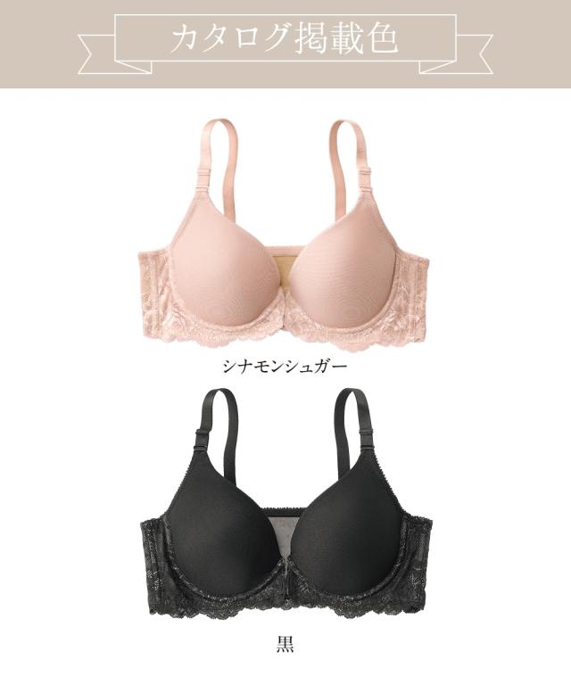 ブラジャー フロントホック モールドカップ 背中レース ワイヤー入り A70〜E80 カーキグリーン/カーキベージュ/パープルネイビー/黒 インナー レディース ニッセン nissen