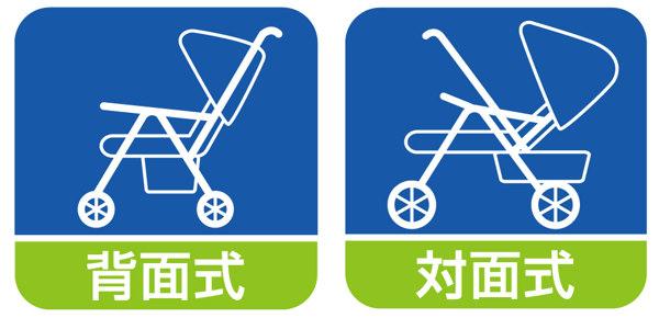 「背面式」「対面式」「A型」「B型」のベビーカーにお使いいただけます。
