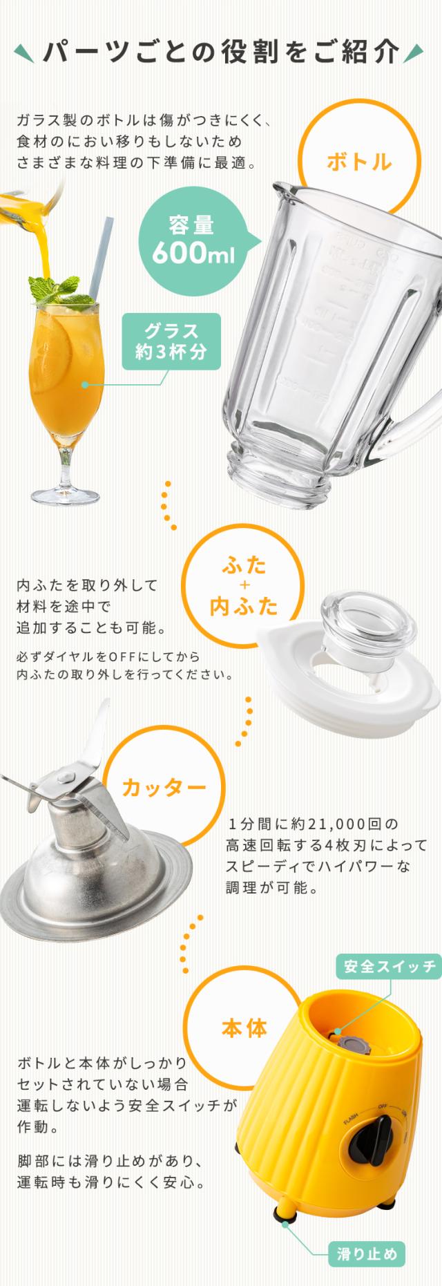 ミキサー ジューサーミキサー 洗いやすい 氷も砕ける 小型 600ml スムージー ジューサー ミキサージューサー コンパクト ジュース スープ シンプル 氷対応 速度調節可 丸洗い お手入れ簡単 ギフト プレゼント 離乳食 幼児食 新生活 PFJM-600 *