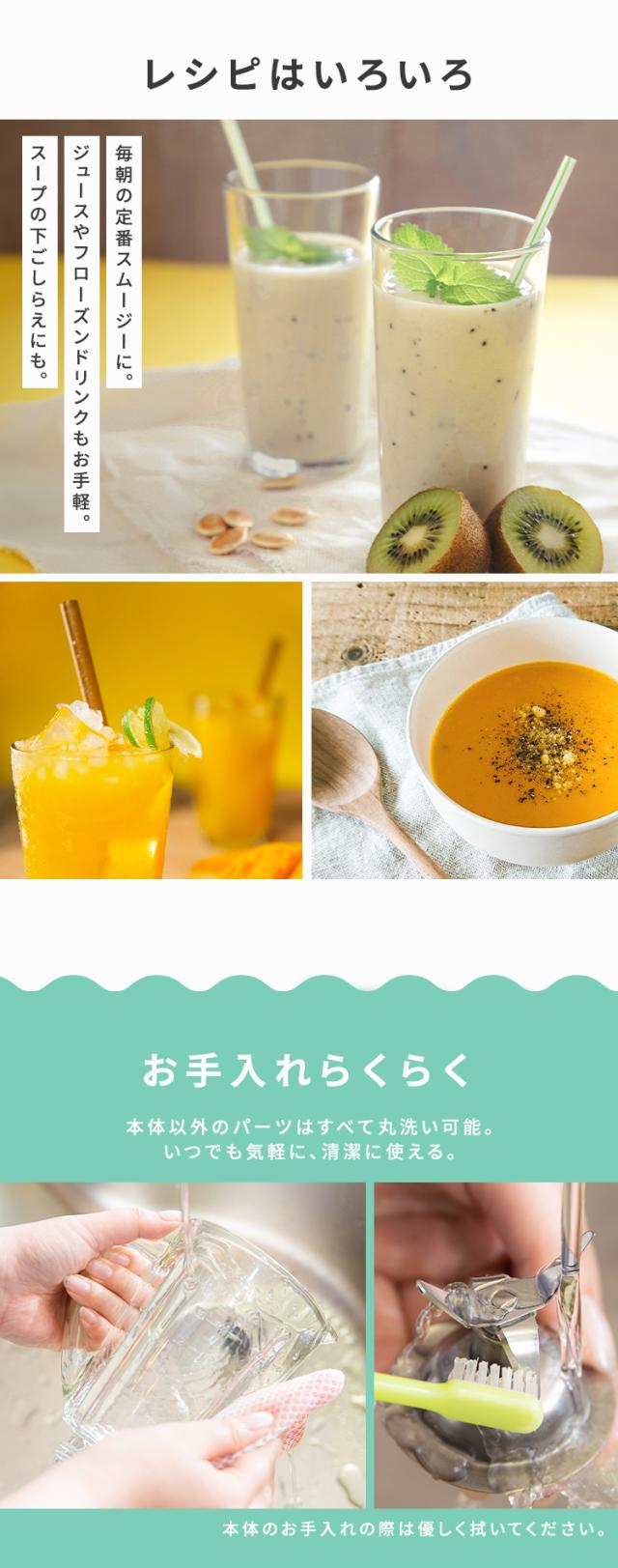 - 毎日使ってスムージー飲むようになりました。 洗いやすいですが、女性だと取っ手付きのガラス容器が重たく感じます。もう少し軽くなると良いです。