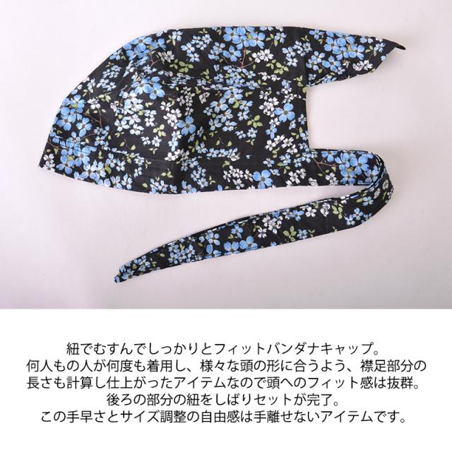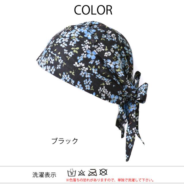 レディース オールシーズン 秋冬 秋用 冬用 春夏 綿100% 黒色 フラワー バンダナ バンダナ帽子 三角巾 大人 おしゃれ 頭巾 キッチン 仕事 医療用帽子 抗がん剤 帽子 ケア帽子 外出用 かわいい 薄手 女性 花柄 | コットン バンダナキャップ (21-J) bc21-j