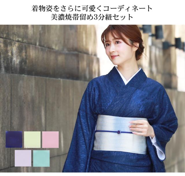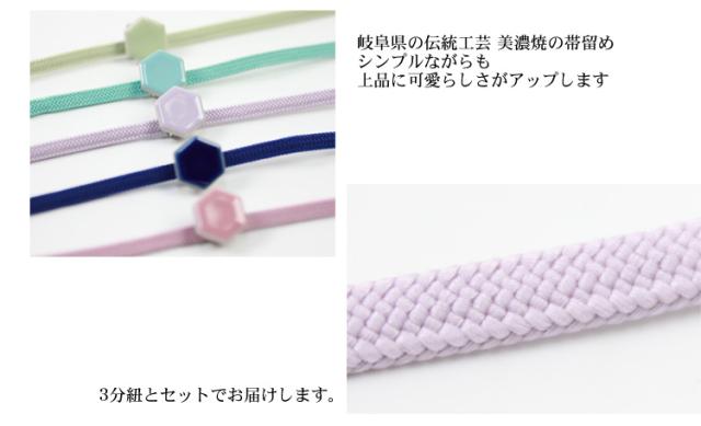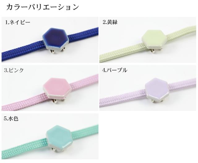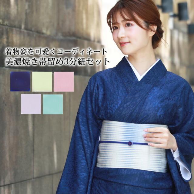 美濃焼き帯留め 3分紐セット 着物 和装 和装小物 美濃焼き 帯留め 三分紐 ネイビー 黄緑 ピンク パープル 水色