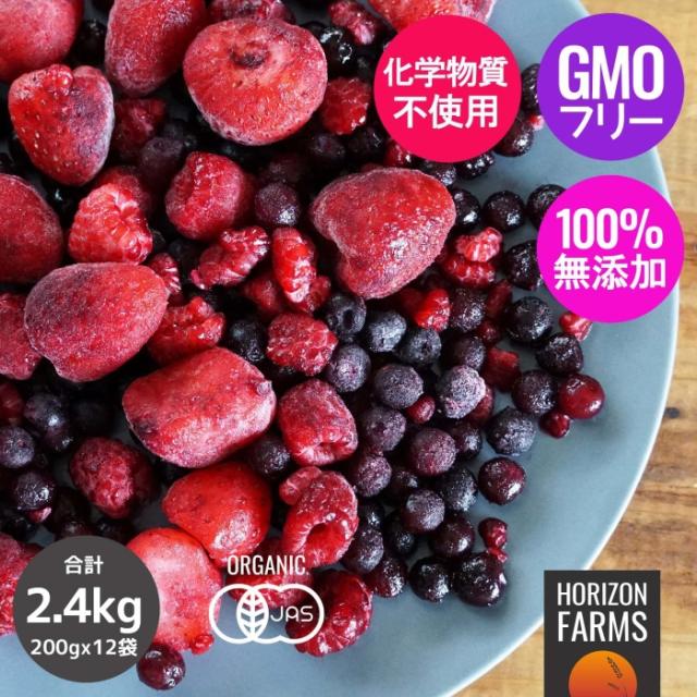 有機 JAS オーガニック フルーツ 冷凍 ミックスベリー 3種 化学物質不使用 200g x 12パックセット 合計2.4kg 無添加 冷凍ベリー