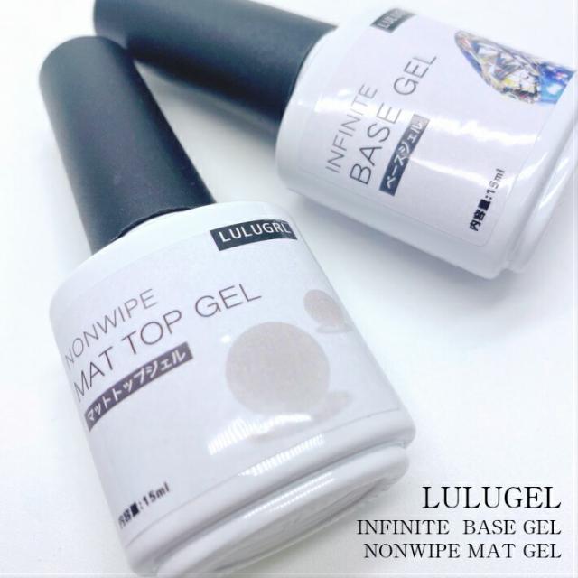 【2点 セット】ジェルネイル セット ノンワイプ マットトップ ベースジェル 各15ml ポリッシュタイプ ルルジェル LULUGEL
