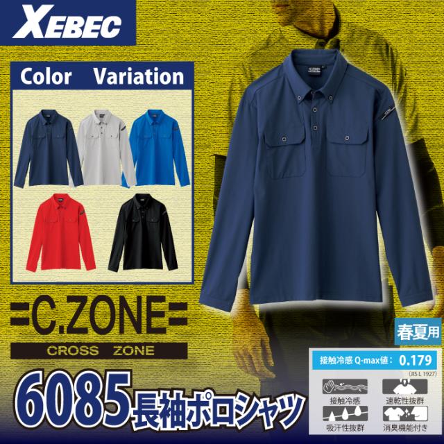 ジーベック XEBEC 作業服 6085 長袖ポロシャツ SS-LL 作業服 春夏用 作業着