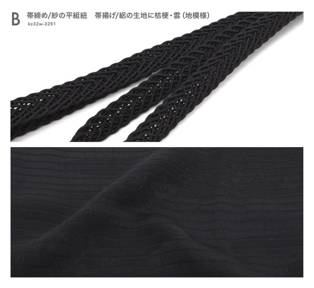 B 紗の平組紐×絽の生地に桔梗・雲(kz32w-3251)