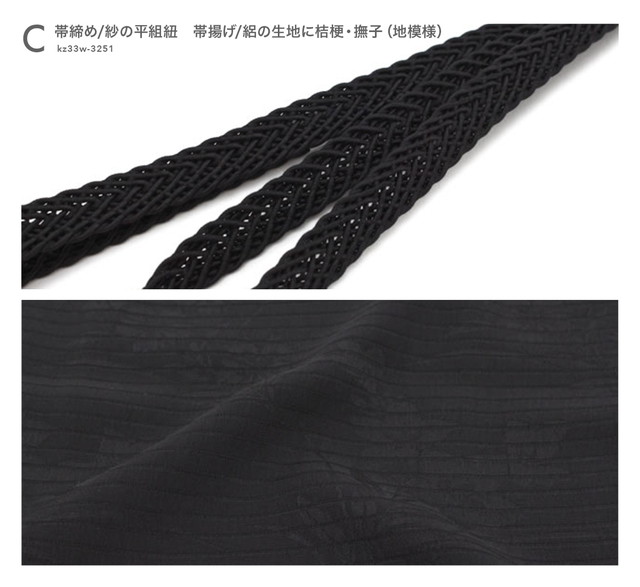 A・B・Cは盛夏で、D・E・Fは盛夏以外オールシーズンで、お葬式やお通夜など、喪服や不祝着での際にお使いいただけます。
