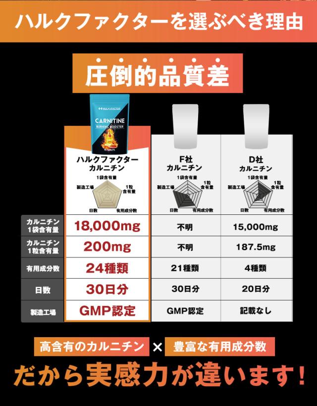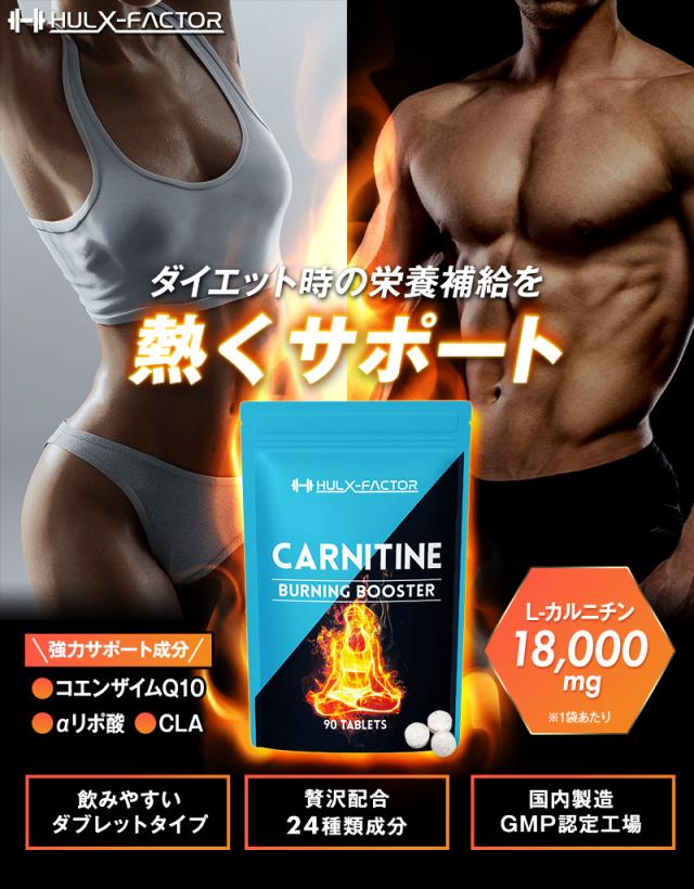 [送料無料]ハルクファクター カルニチン [90粒 30日分]サプリメント バーニングブースター ランキング1位 ヒハツエキス エンザイムQ10 α-リポ酸 CLA ブラックジンジャー HMB BCAA マルチビタミン 運動系 ダイエット 栄養補給
