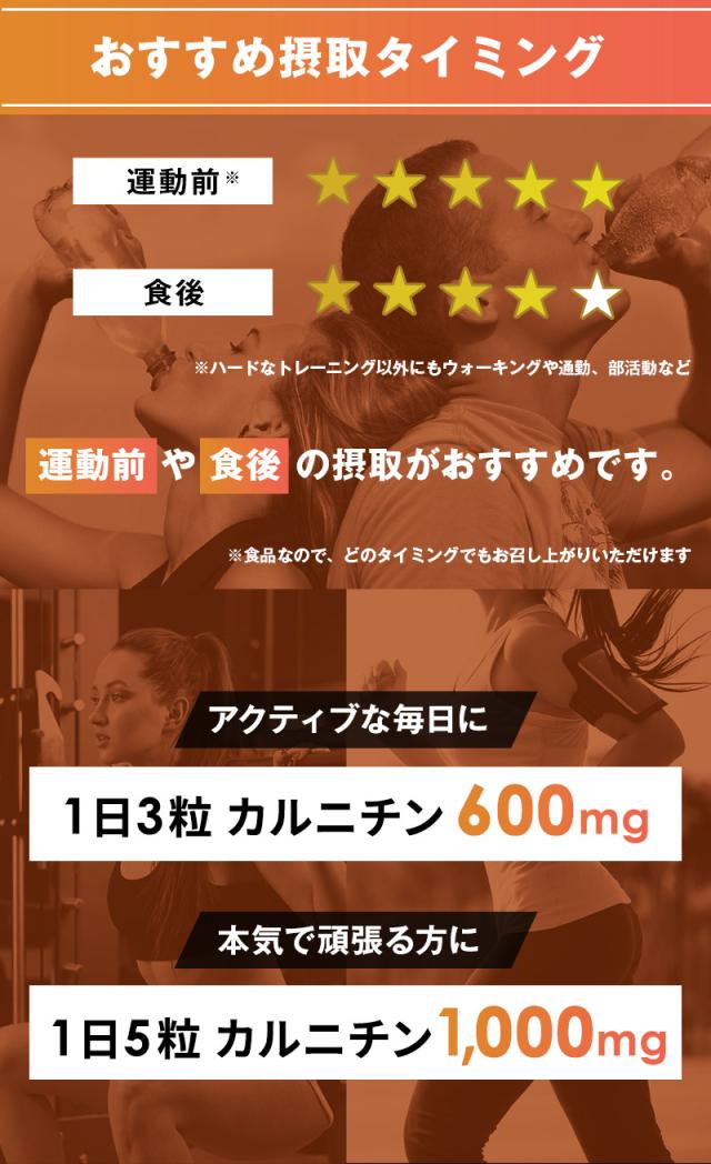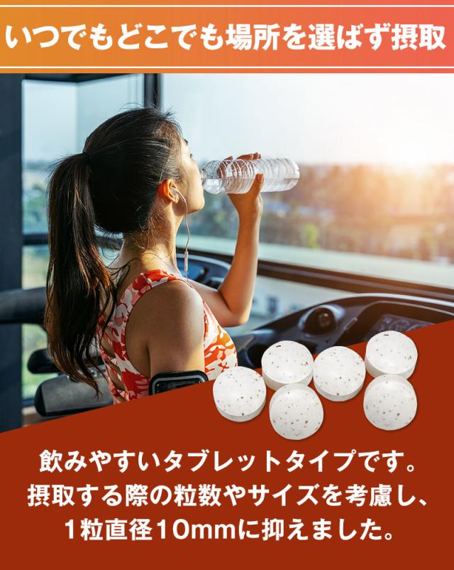 | 1日3粒を目安に水またはぬるま湯などと一緒にお召し上がりください。運動前または食後の摂取がおすすめです。 |