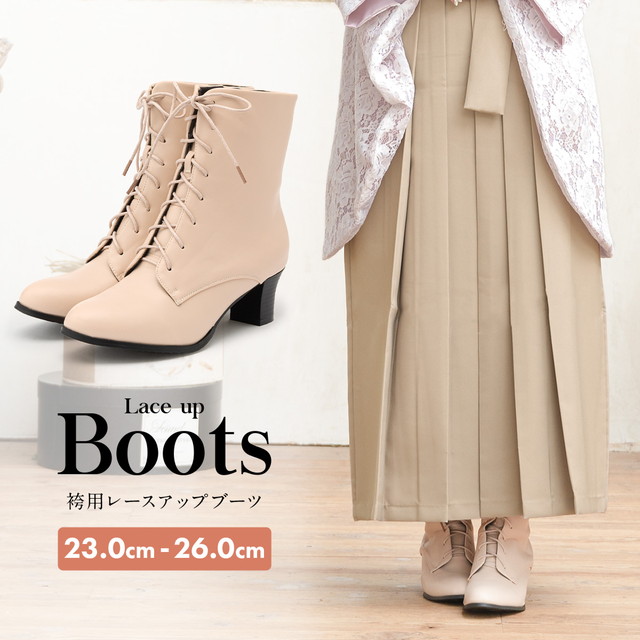 袴ブーツ 袴 ブーツ 卒業式 靴 薄茶 ベージュ 合皮 レースアップ 編み上げ ショート カジュアル レディース 女性 シンプル 23~26cm 送料無料