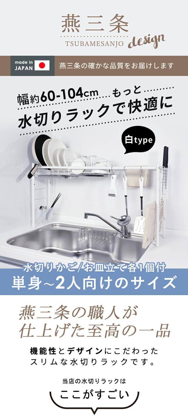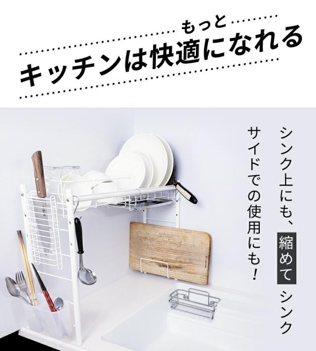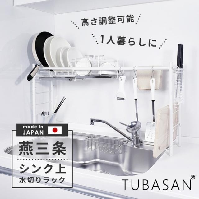 【公式ショップ 正規品】 水切りラック シンク上 スリム 燕三条 水切りかご 1個タイプ 白 おしゃれ 一人暮らし シンク横 狭い 高さ調節 【送料無料】コンパクト グラス まな板 食洗機 サブ 新生活 おすすめ 水切り ラック 付属品も充実! 50007
