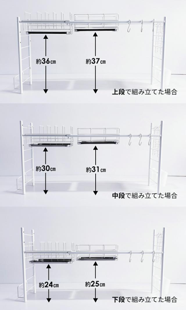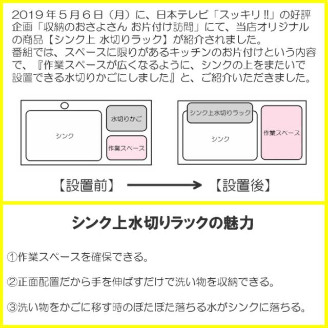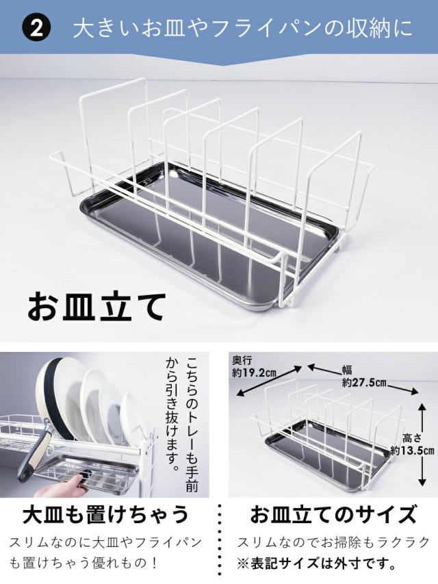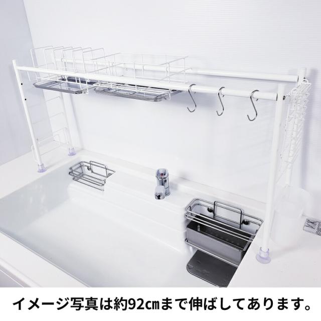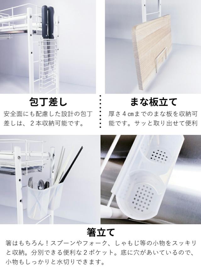 ■生産国:日本 燕三条 ■付属品:水切りかご×1 皿立て×1 トレー×2 箸立て×1 包丁差し×1 まな板立て×1 S字フック×3 脚用吸盤×4