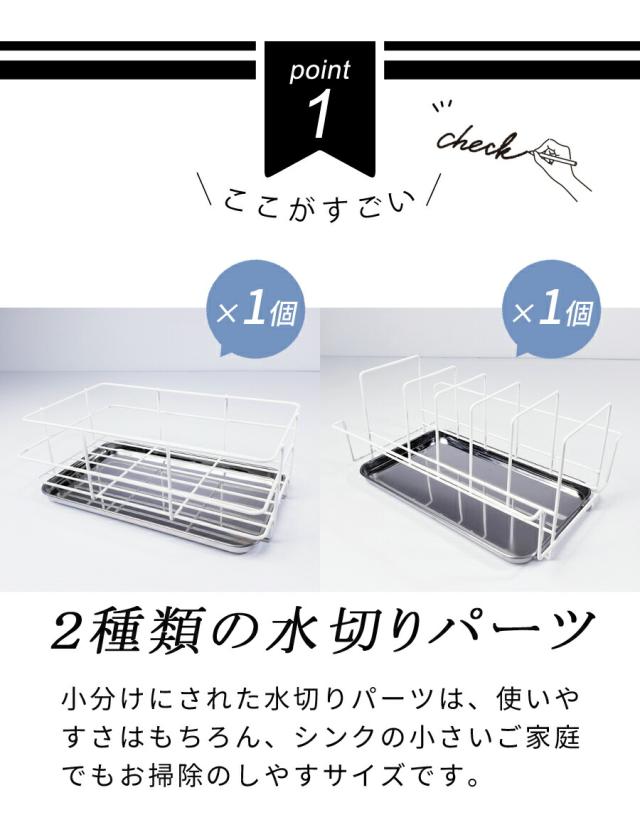 - 1Kの一人暮らしアパートで狭いキッチンの為、ただでさえ少ない作業スペースが、洗い物かごで半分取られることが困り事でした。この水切りかごでスペース問題は解消されました。付属のカゴの大きさが小さく、大きい...