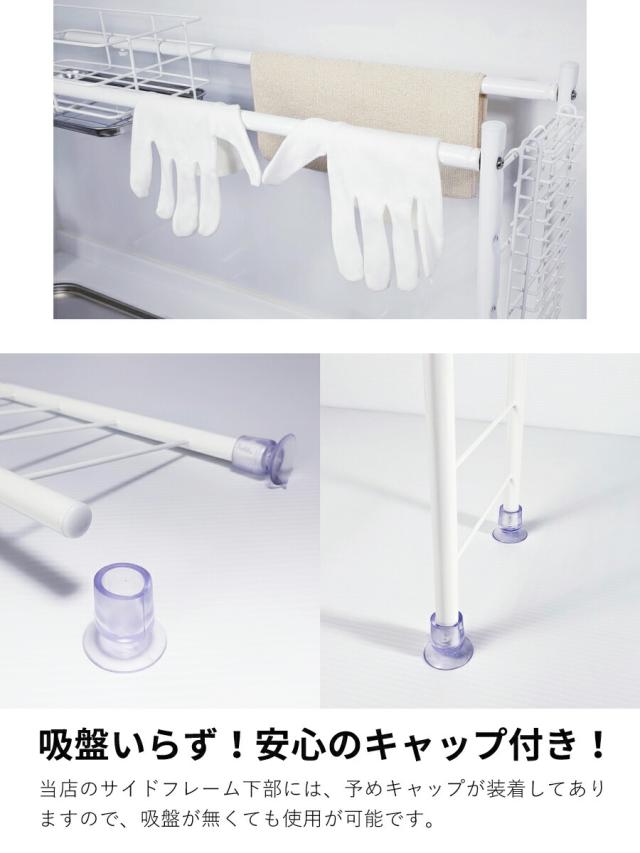 - 狭いキッチンの賃貸に引っ越したので水切り台がほしかったんですが、これならシンクの上に置けるので洗ってすぐ一旦置ける。 足元の吸盤が安定してて良いです。