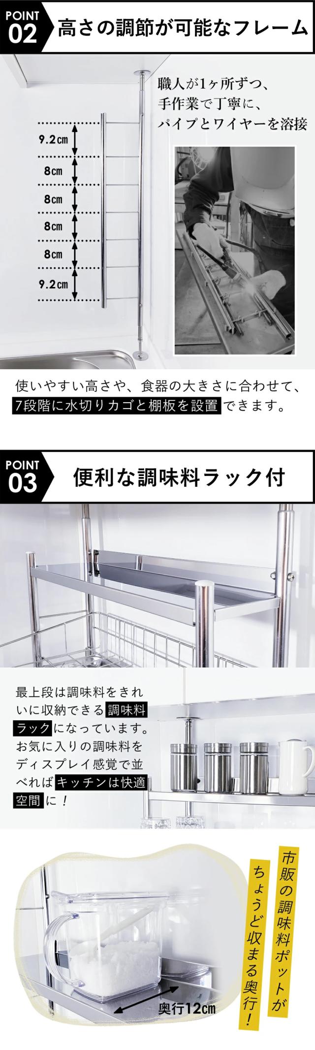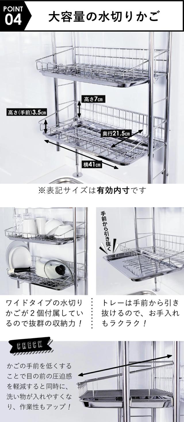 ■生産国:日本 燕三条 ■付属品:棚板×1 水切りかご×2 トレー×2