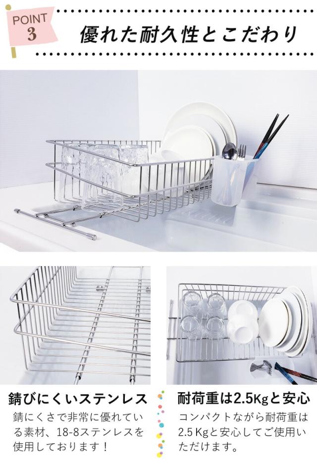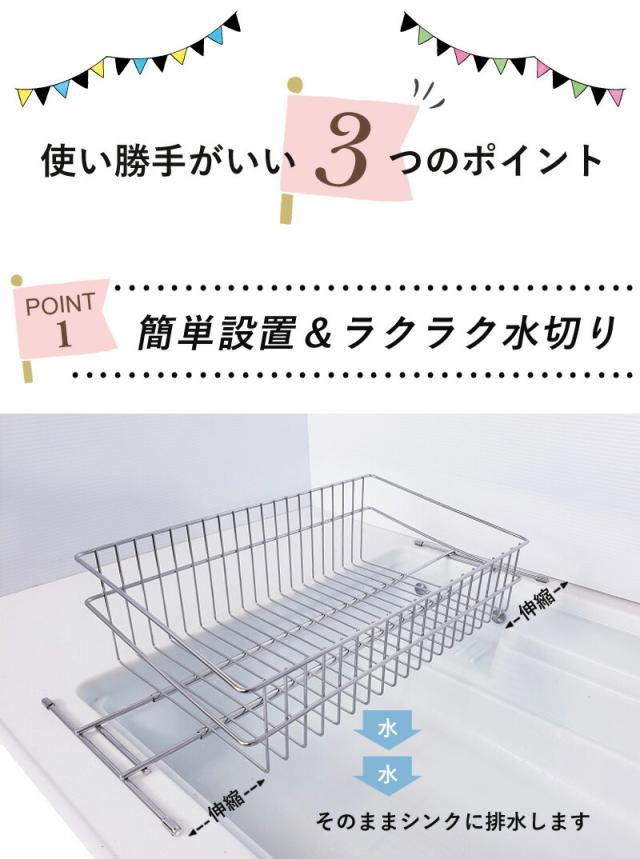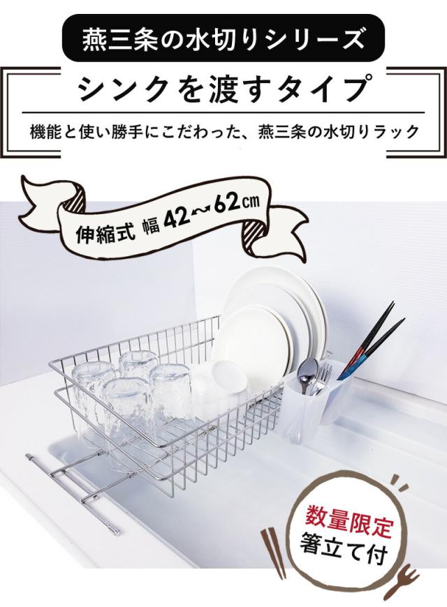 【公式ショップ 正規品】 水切りかご 水切りラック スリム ステンレス 燕三条 シンク渡し シンク横 一人暮らし 狭い キッチン おすすめ シンク内 おしゃれ コンパクト グラス 収納 伸縮 ミニ シンク上 送料無料 日本製 水切り ラック 燕 三条 ステンレス 新生活 50013