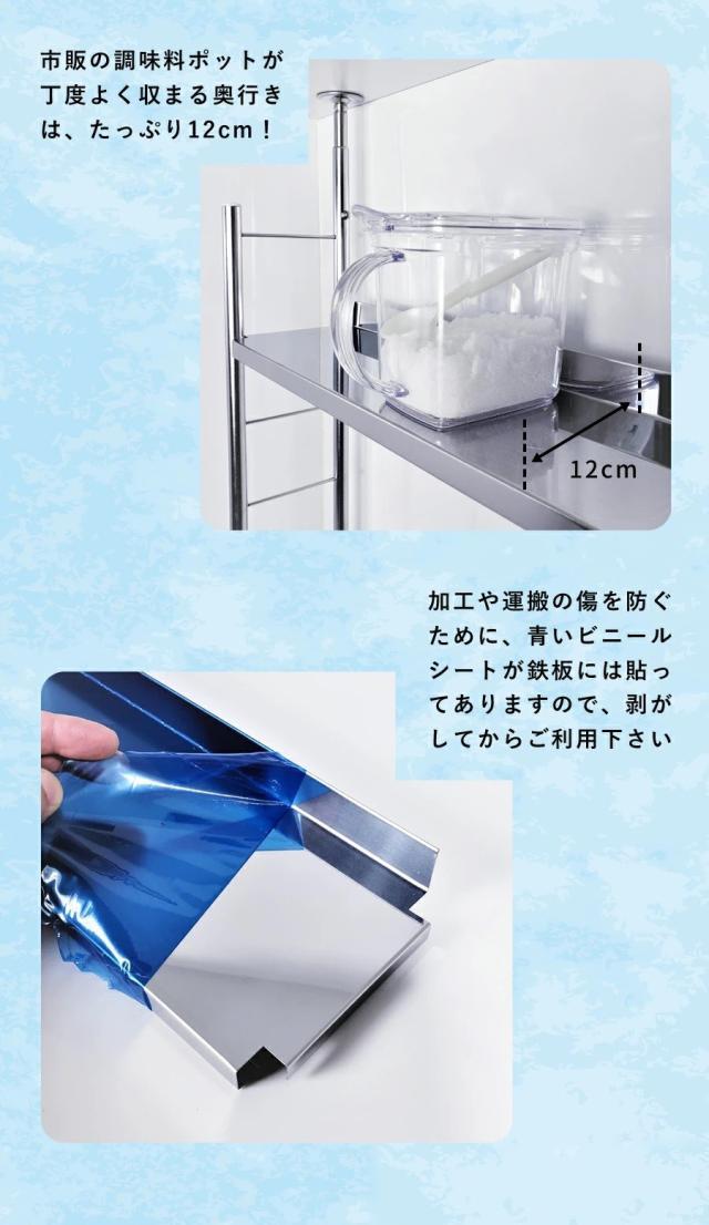 調味料をディスプレイ!設置して実感できる、ステンレス製の綺麗な調味料ラック。ワイドタイプです。 50015