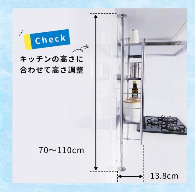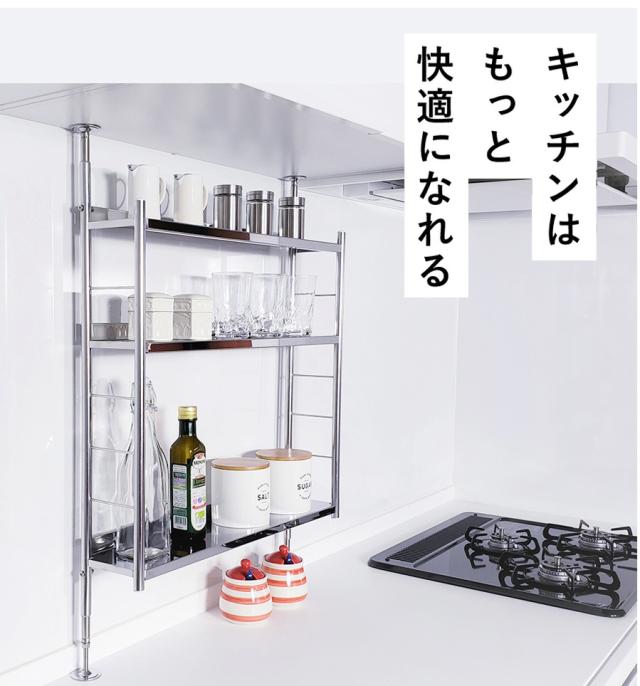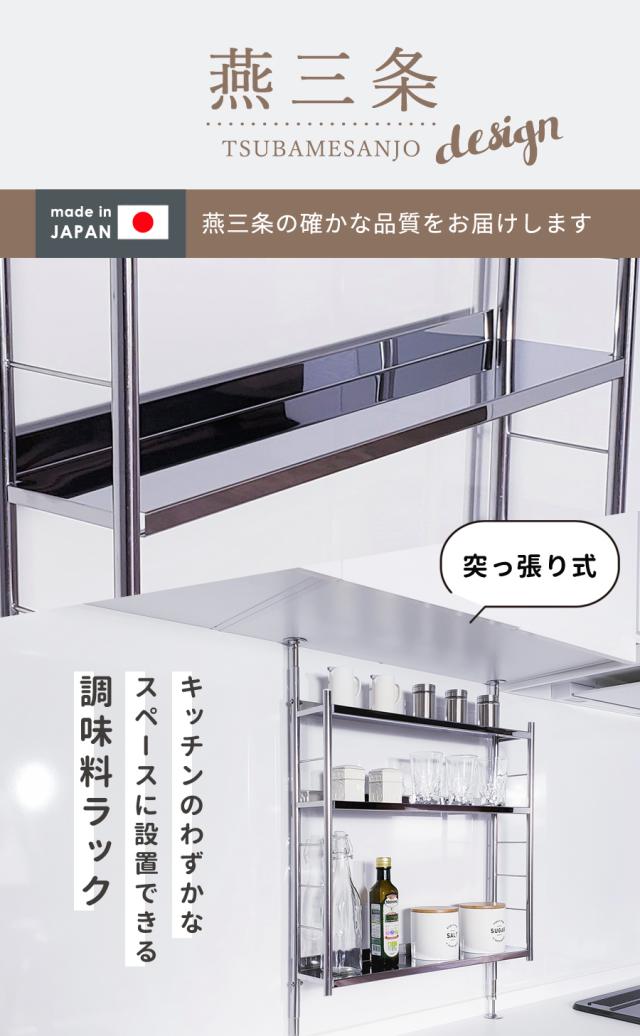 【公式ショップ 正規品】 調味料ラック 突っ張り スパイスラック ワイド つっぱり シンク上 ステンレス 3段 キッチン 出窓 棚 おしゃれ シンク グラス 収納 おすすめ 燕三条 突っ張り式調味料ラック 50015