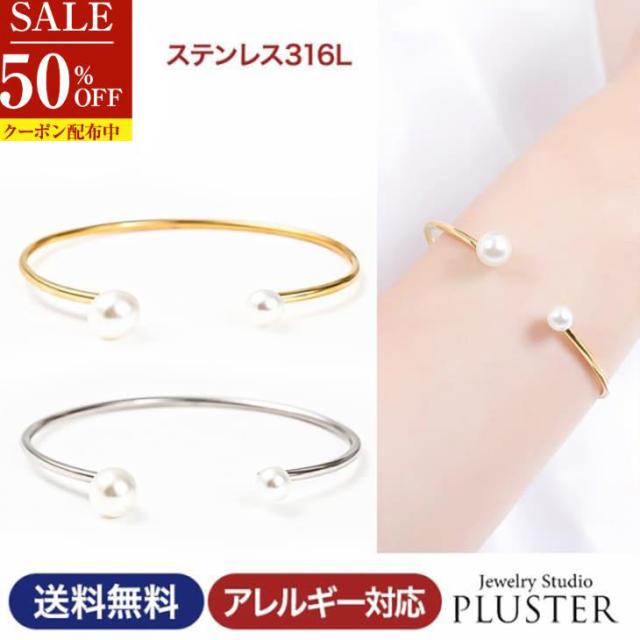 半額 ブレスレット レディース バングル 金属アレルギー対応 ステンレス316L サージカルステンレス 医療用 パール イエロー ホワイト ゴールド ジュエリー アクセサリー アレルギー 結婚式 シンプル 彼女 ギフト 誕生日 クリスマス プレゼント 女性 アクセサリー