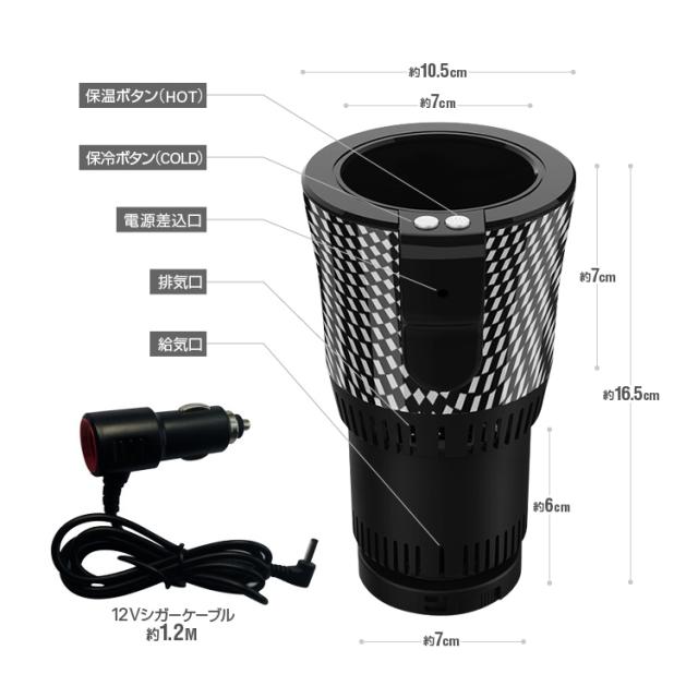 車載ドリンクホルダー 保温/保冷両対応 12Vシガー給電 1mケーブル付属 カップホルダー ドリンクウォーマー 58℃まで CARDCP36W