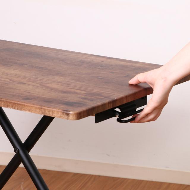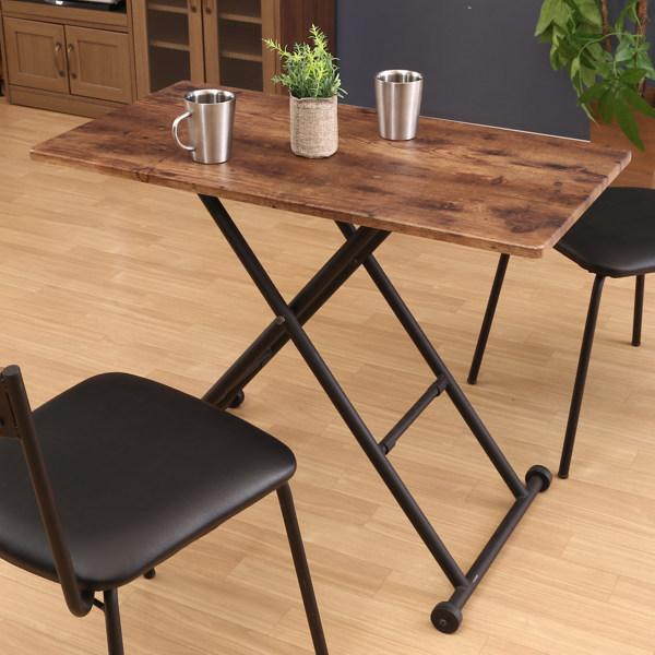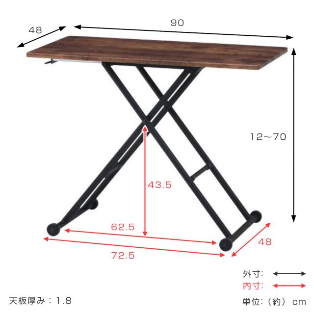昇降テーブル 幅90cm 高さ調整 レバー式 ヴィンテージ調 ( 高さ12〜70cm リビング テーブル デスク ローテーブル センターテーブル 折りたたみ コンパクト スリム 木目調 スチール脚 異素材 )